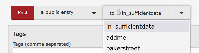 Before you join a game or other comm on Dreamwidth, you will see the following menu in the navigation strip at the top of the main journal page: